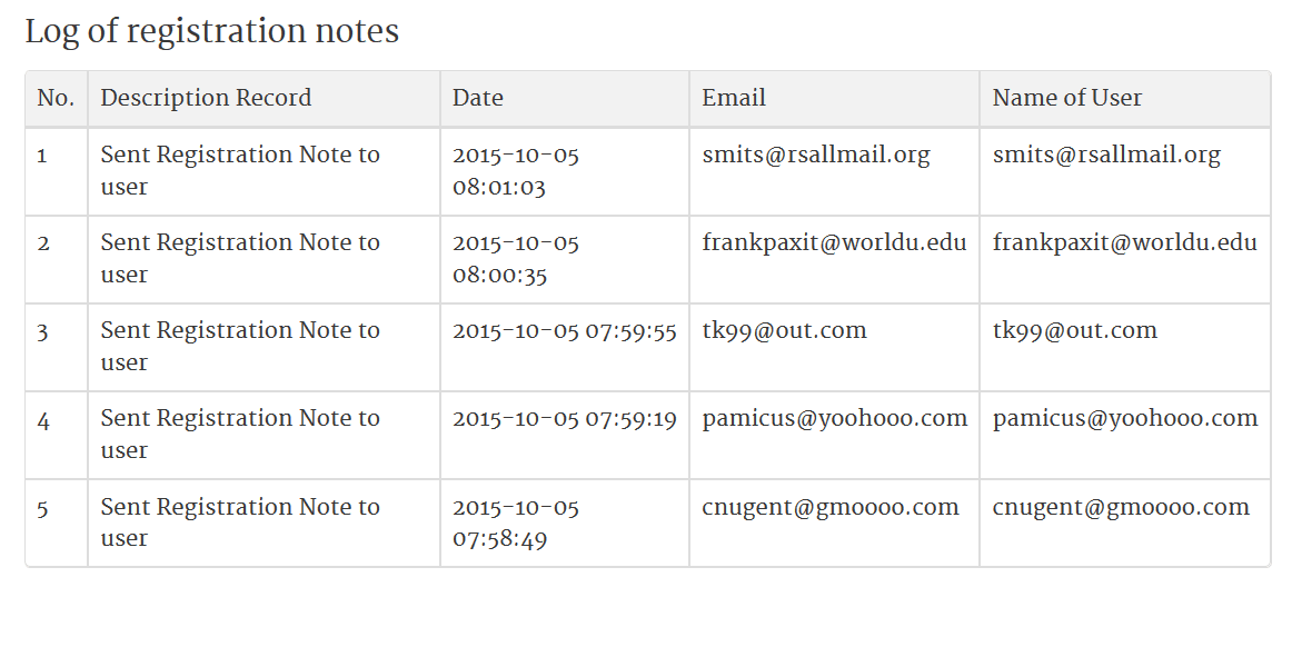 View a Log of all events for each user, in case you forget whether or not you sent registration, etc.