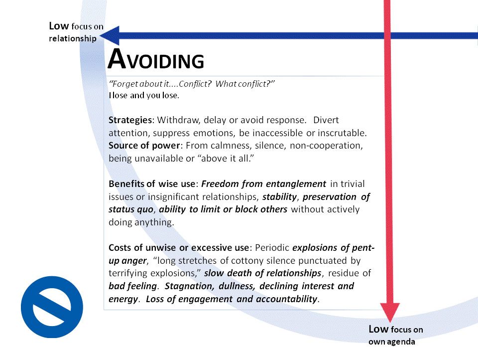 Why bother? Because if you don't understand that each style is very useful for certain purposes and quite unhelpful for others, you will probably make things worse for yourself and others in some conflicts, even when your intentions are good. If you understand each style you will have greater flexibility and freedom to choose the response that is right for you.
